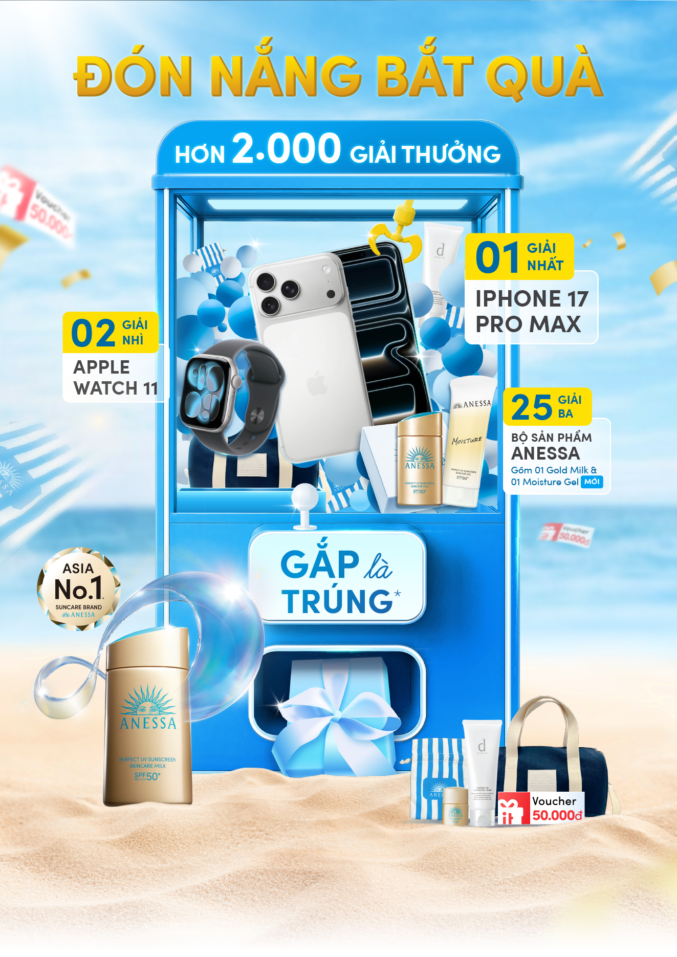 Một trong các sản phẩm dưới đây: Sữa chống nắng Anessa dưỡng da kiềm dầu bảo vệ hoàn hảo SPF50+ PA++++12ml; hoặc Túi rút canvas; hoặc Thẻ quà tặng Got it trị giá 50,000 VND